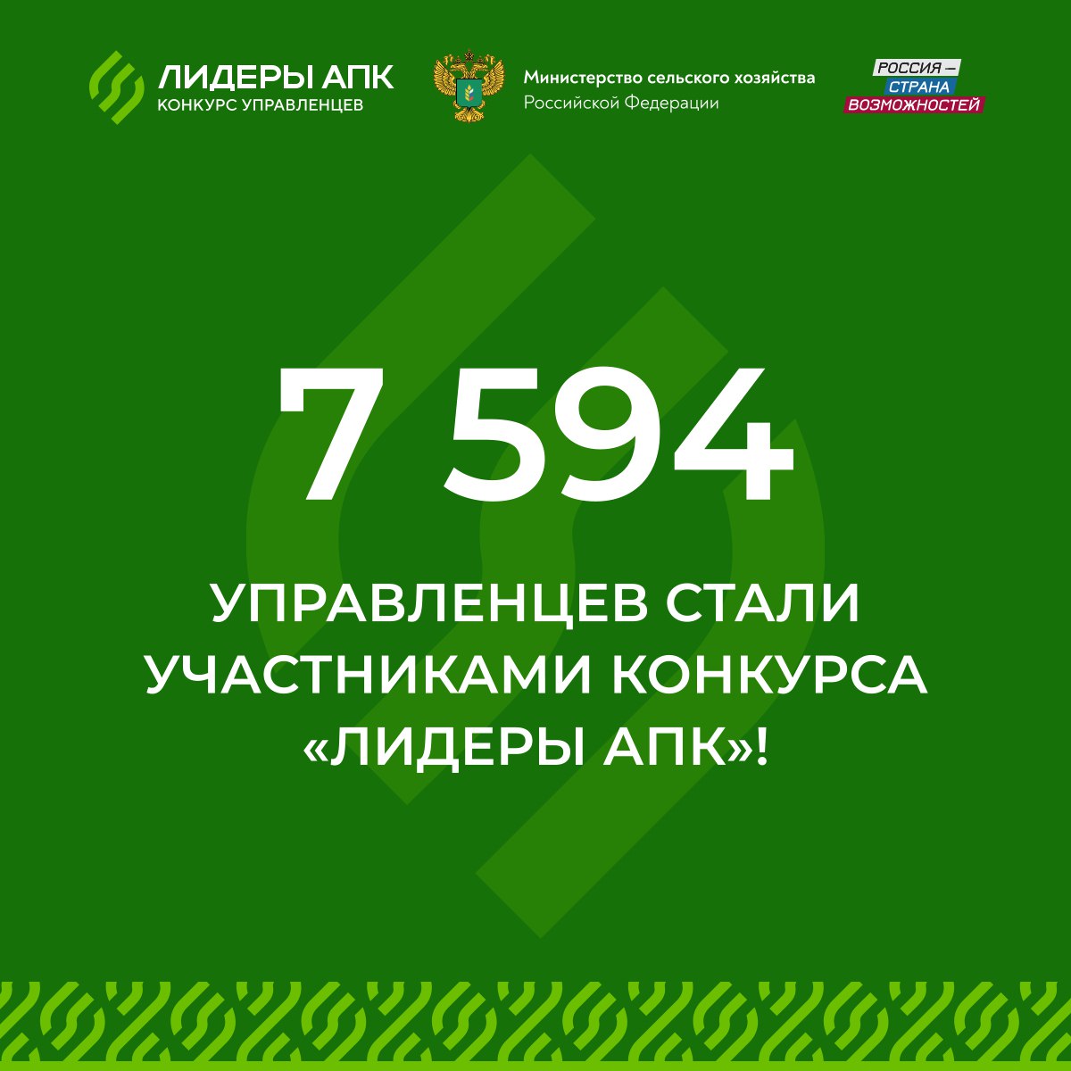 Подведены итоги заявочной кампании конкурса «Лидеры агропромышленного комплекса» Президентской платформы «Россия – страна возможностей», нацеленного на поиск и развитие перспективных руководителей в области сельского хозяйства, который проводится совместно с Министерством сельского хозяйства РФ. Всего конкурс объединил 7594 участника, представляющих разные отрасли сельского хозяйства. Далее их ждет дистанционный этап.